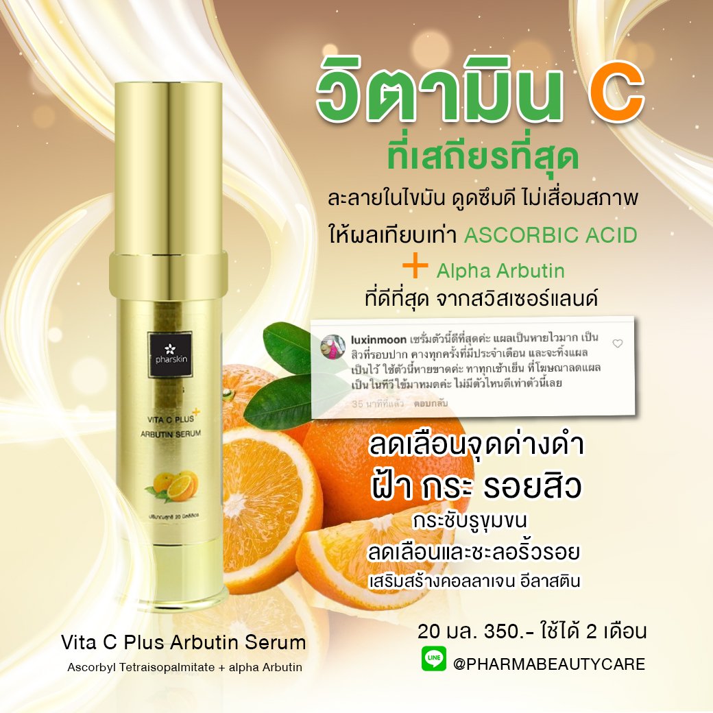 เซรั่มวิตามินซี-อาร์บูติน ใ้ช้วิตามินซีอนุพันธ์ที่ดูดซึมได้ดีและเสถียรที่สุด ร่วมกับสารอาร์บูตินจากสวิตเซอร์แลนด์ ช่วยป้องกันและลดเลือนฝ้ากระจุดด่างดำได้อย่างเห็นผล