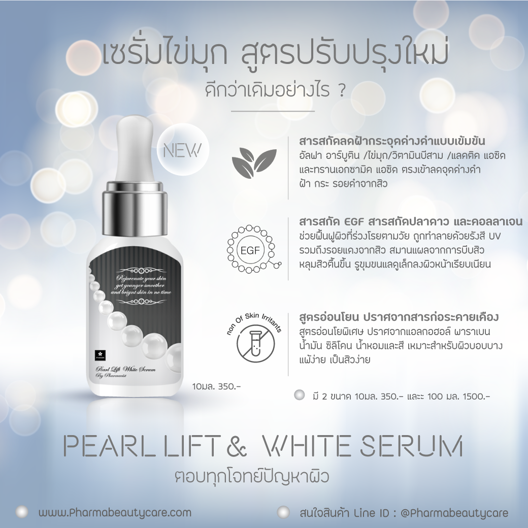 1. Pearl lift and white serum เซรั่มหน้าใส สูตรผสมผงไข่มุก