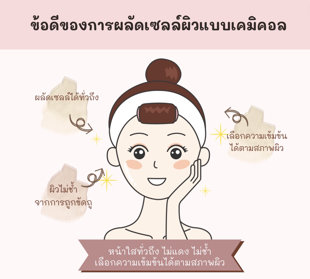 หลักการผลัดเซลล์แบบ chemical ใช้หลักการทางเคมี ออกฤทธิ์คลายสะพานเชื่อมเซลล์ ทำให้เซลล์ขี้ไคลหลุดออกจากกันได้ง่ายดาย โดยไม่ต้องออกแรงขัด