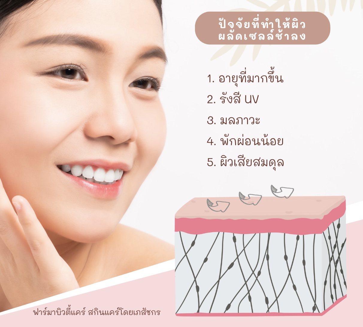 อายุที่เพิ่มขึ้น รังสี UV มลภาวะ การพักผ่อนน้อย ผิวขาดน้ำ ผิวระคายเคืองหรือแพ้จนผิวอักเสบ การผลัดเซลล์ผิวจะช้าลง เกิดการสะสมสมของเซลล์ขี้ไคล ทำให้ผิวหมองคล้ำ หยาบกร้าน อุดตันง่าย รูขุมขนกว้าง ไม่กระชับ ดูดซึมครีมไม่ดี การใช้ผลิตภัณฑ์ผลัดเซลล์ผิว สามารถช่วยแก้ปัญหานี้ได้ ในราคาไม่แพง ผลลัพธ์คุ้มค่า แต่ทั้งนี้เราต้องเลือกผลิตภัณฑ์ผลัดเซลล์ผิวที่เหมาะกับสภาพผิวเราด้วยนะคะ