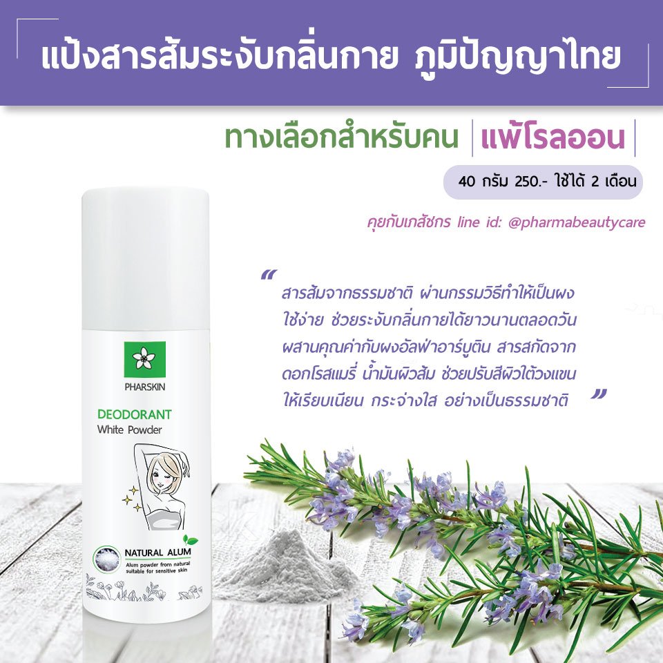 ตอบ แนะนำผงแป้งรักแร้สูตรสารส้มของฟาร์มาบิวตี้แคร์ ใช้ส่วนประกอบหลักเป็นสารส้มจากธรรมชาติ ขนาดบรรจุ 40 กรัม ราคา 250.- ใช้ได้ 2-3 เดือน