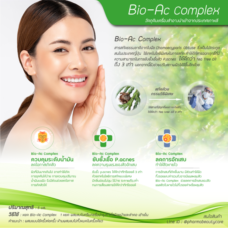 สารสกัดธรรมชาติจากใบพืช Chamaecyparis Obtuse ซึ่งเป็นไม้ตระกูลสนในประเทศญี่ปุ่น ใช้เทคโนโลยีพิเศษในการสกัด ทำให้ได้สารออกฤทธิ์ที่มีความสามารถในการยับยั้งเชื้อสิว P.acnes ได้ดีกว่า Tea Tree Oil ถึง 3 เท่า นอกจากนี้ยังช่วยปรับสภาพผิวให้ดีขึ้นอีกด้วย